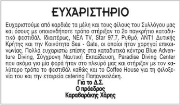 23:00 ο Μάνος Ρουμελιωτάκης μαζί με άλλα μέλη του συλλόγου θα βρίσκονται